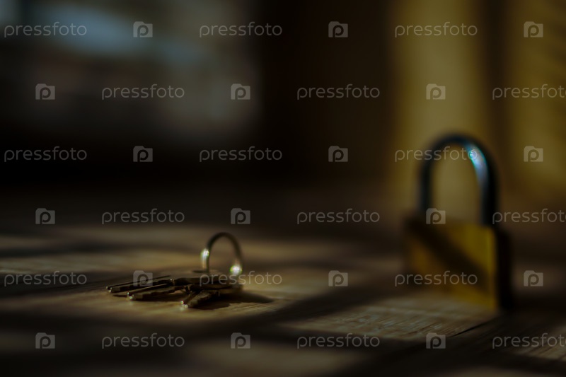 Связка ключей с кольцом для ключей в форме дома на деревенском деревянном столе