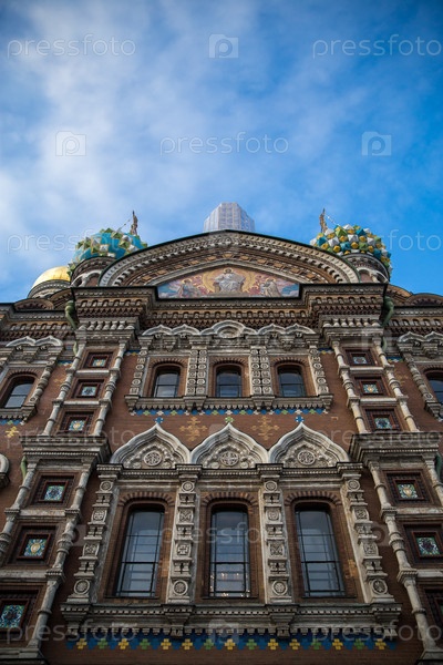 Православный русский храм с зелеными куполами на фоне голубого неба без облаков