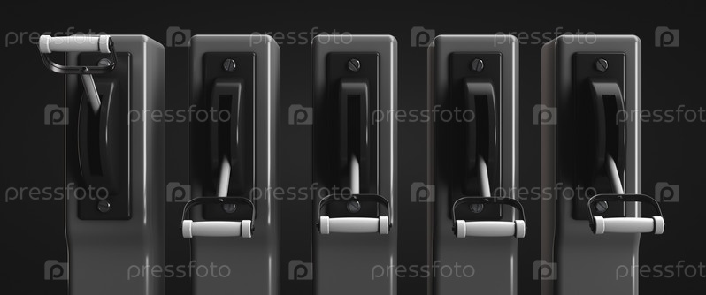 Группа промышленных высоковольтных рычажных выключателей. Тематики электроэнергетики