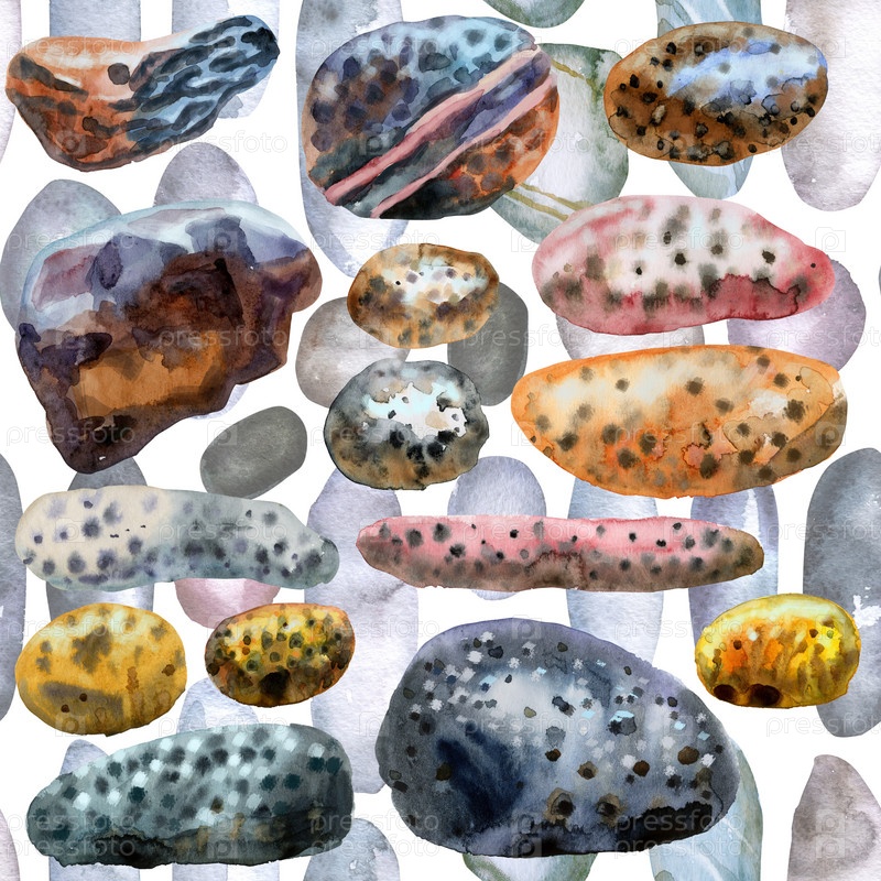 Ручной рисунок изолированный красочный бесшовный узор из камней на белом фоне