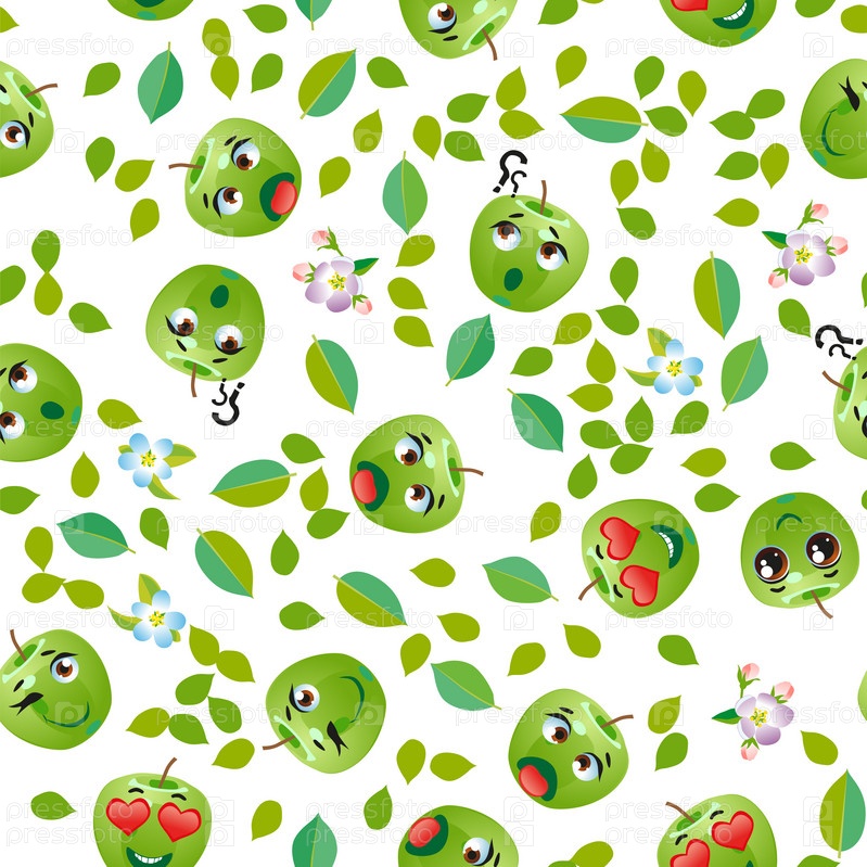 Бесшовный рисунок фруктового яблока. Смешные милые лица персонажей