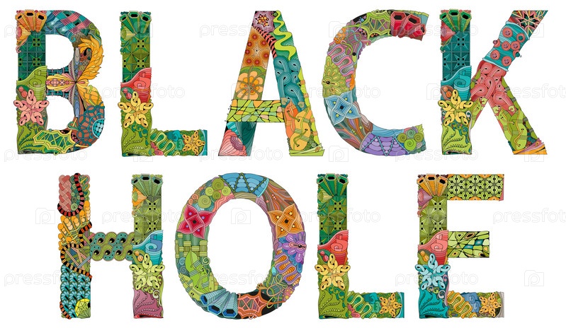 Художественный дизайн ручной росписи. Ручной рисунок слова ЧЕРНАЯ ДЫРА для футболки и других украшений