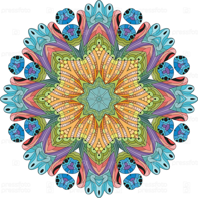 Декоративные круглые украшения. Необычная форма цветка. Восточный вектор, схемы антистрессовой терапии. Переплетение элементов дизайна. Вектор логотипов йоги