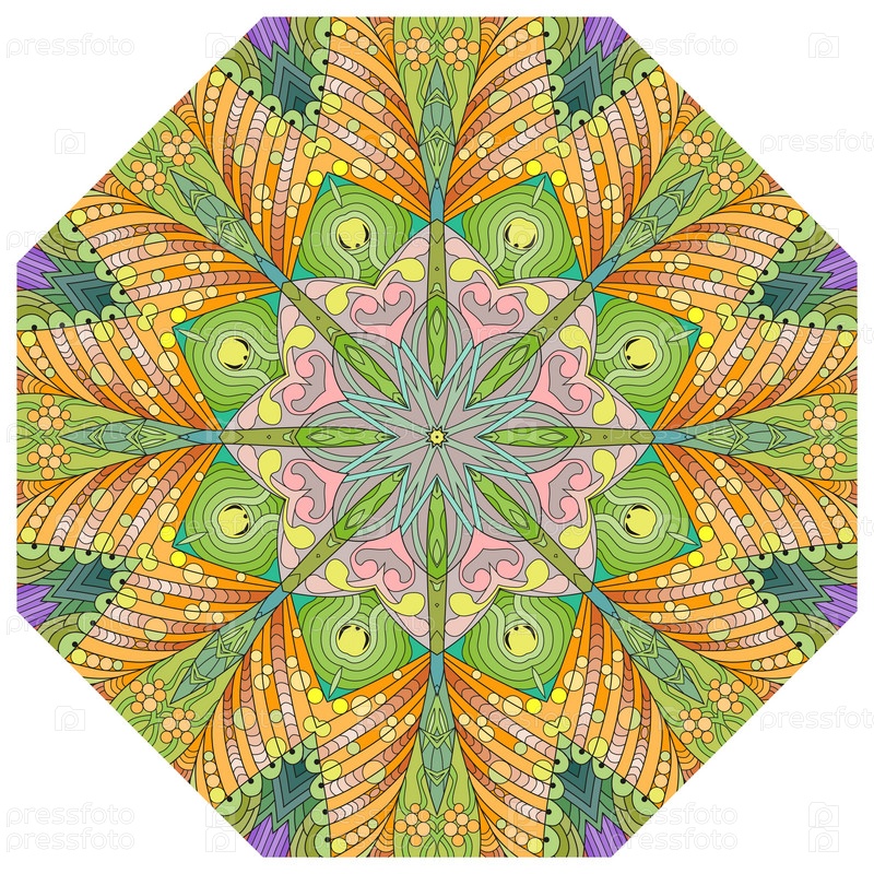 Декоративные круглые украшения. Необычная форма цветка. Восточный вектор, схемы антистрессовой терапии. Переплетение элементов дизайна. Вектор логотипов йоги