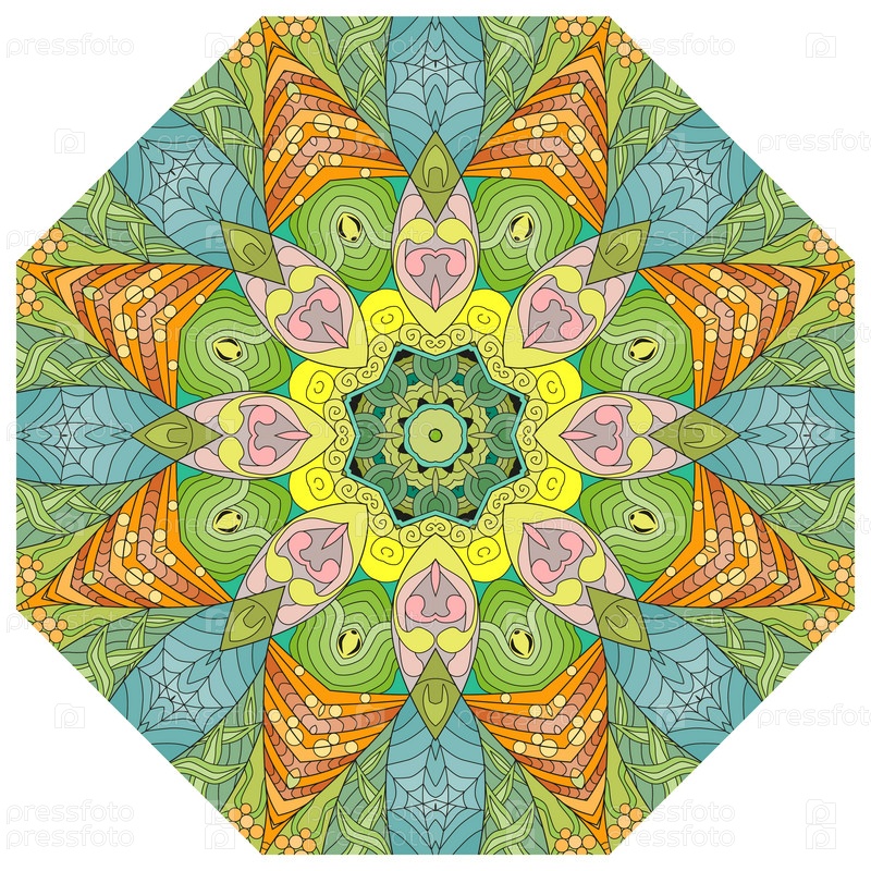 Декоративные круглые украшения. Необычная форма цветка. Восточный вектор, схемы антистрессовой терапии. Переплетение элементов дизайна. Вектор логотипов йоги