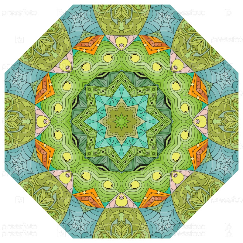 Декоративные круглые украшения. Необычная форма цветка. Восточный вектор, схемы антистрессовой терапии. Переплетение элементов дизайна. Вектор логотипов йоги