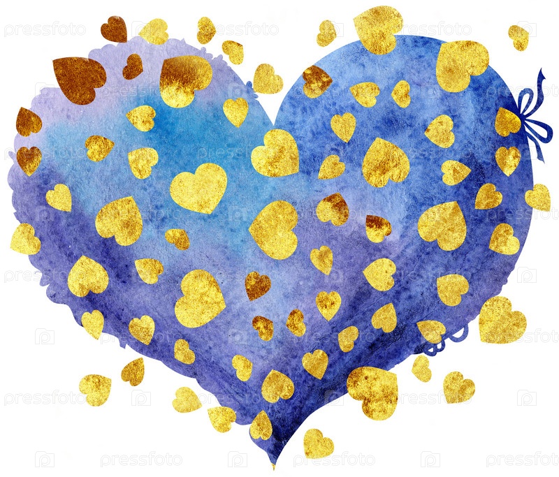 Акварель фиолетовое сердце с золотыми точками в форме сердца