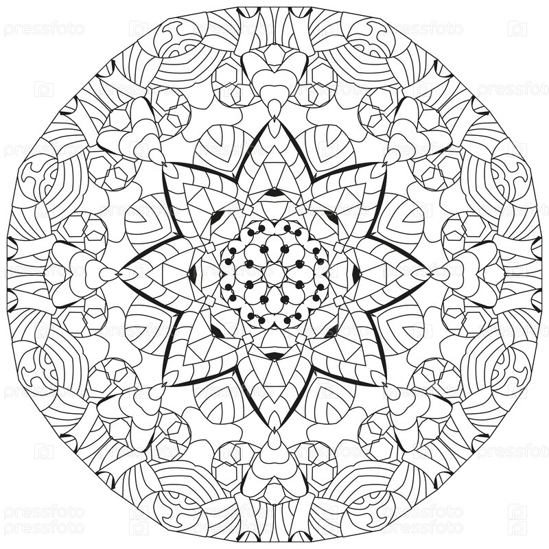 Круговой орнамент ручной работы для раскраски страницы