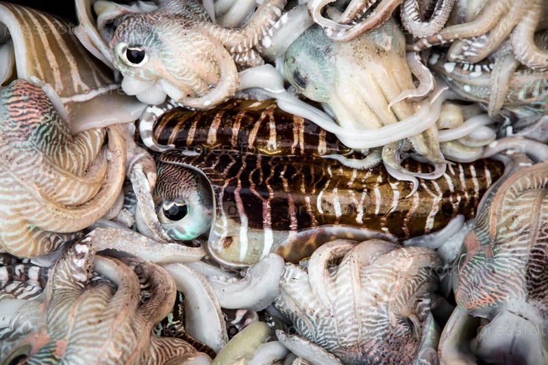 Лоток свежих кальмаров