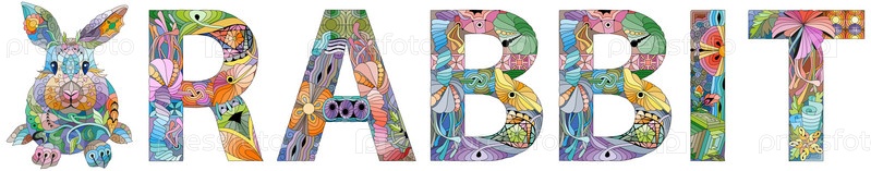 Художественный дизайн ручной росписи. Ручной рисунок слова кролика для футболки и других украшений