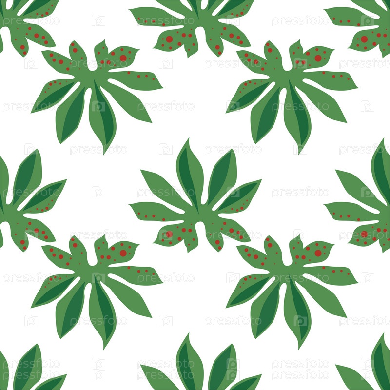 Бесшовный цветочный узор с модными растениями на белом фоне. Векторная иллюстрация. Печать на ткани, бумаге, обоях, дизайн упаковки