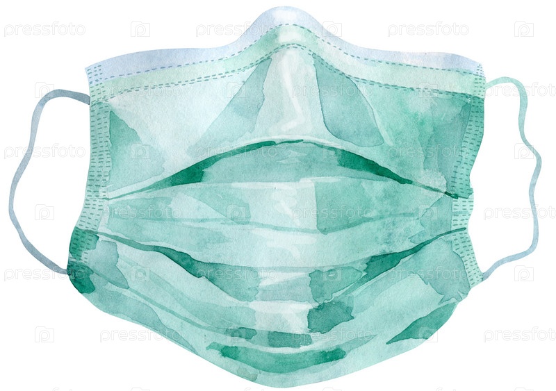 Маска для лица защищает от вирусов акварельный клипарт. Здравоохранение, медицинская маска ручной работы
