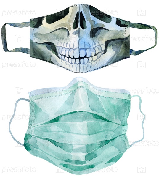 Набор защитных масок для лица от вирусного акварельного клипарта. Здравоохранение, медицинская маска ручной работы