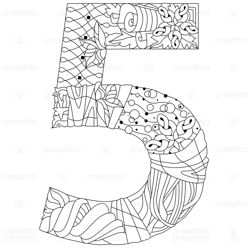 Пять чисел Изолированная иллюстрация zentangle для окраски