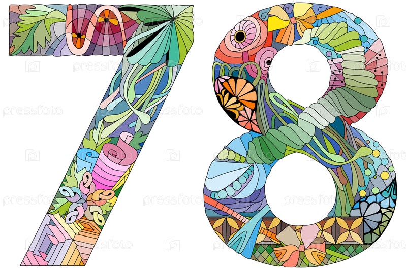 Семьдесят восемь цифр Изолированная иллюстрация зентегла для украшения
