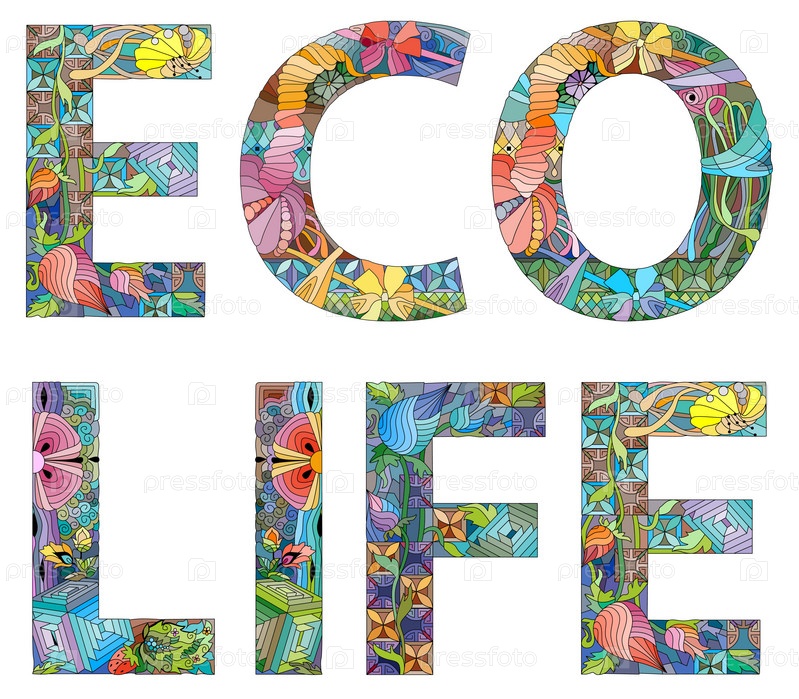 Художественный дизайн ручной росписи.Ручная рисование слов ECO LIFE на футболках и других украшениях