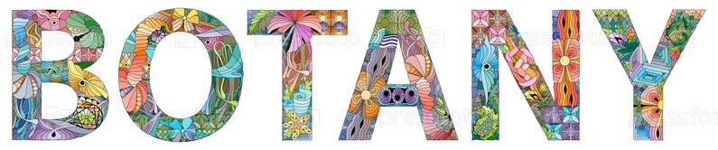 Слово БОТАНИКА с символом мира. векторный декоративный объект zentangle