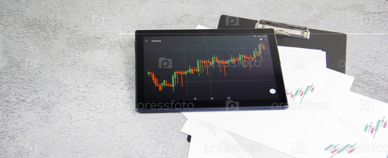 Криптовалюты, монеты, биткоины, графическая бумага и планшет на столе