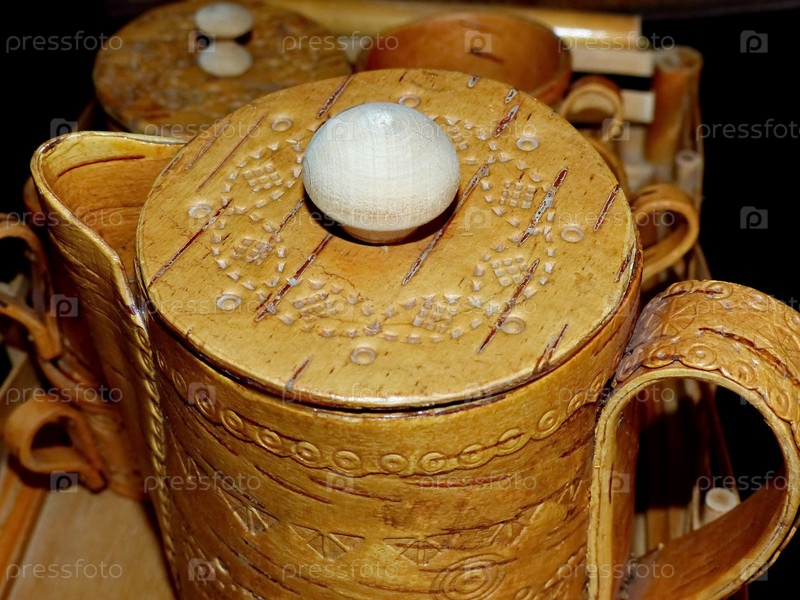 Чайник из бересты. Кухонные принадлежности. Народные промыслы России. Ретро. Изделия из бересты изготавливались большинством обществ задолго до того, как была изобретена керамика