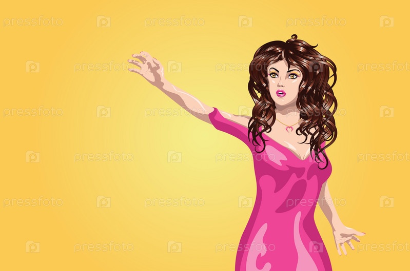 Брюнетка в розовом платье