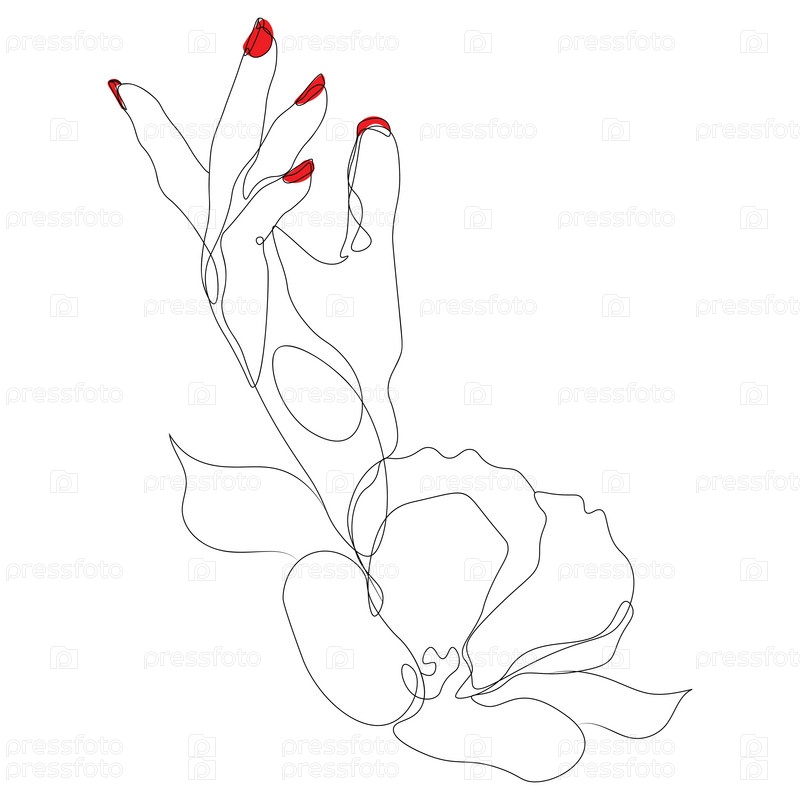 Рука с красными ногтями и цветочной линией