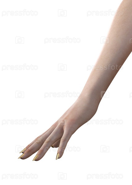 3D кавказская женская рука с золотыми ногтями