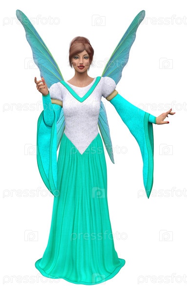 3D Фея в бирюзово-белом платье