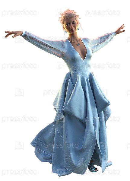 3D Девушка в голубом платье