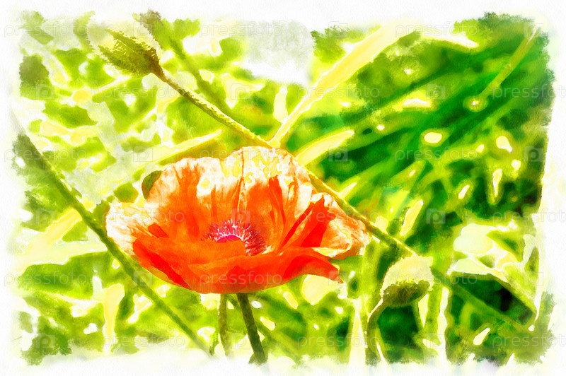 Цветы дикого мака цифровая акварель