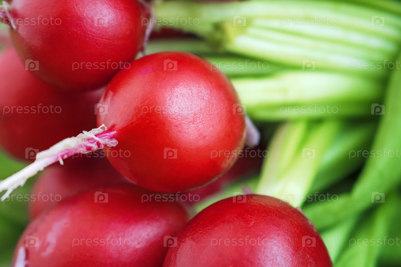 Свежая молодая редька с листьями крупным планом. Выборочный фокус. Экологические овощи. Копировать пространство