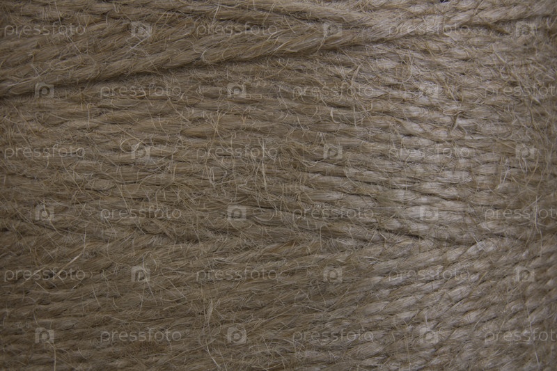 Моток грубой коричневой бечевки, крупный план. Фоновая текстура. Экологические материалы, переработка, упаковка