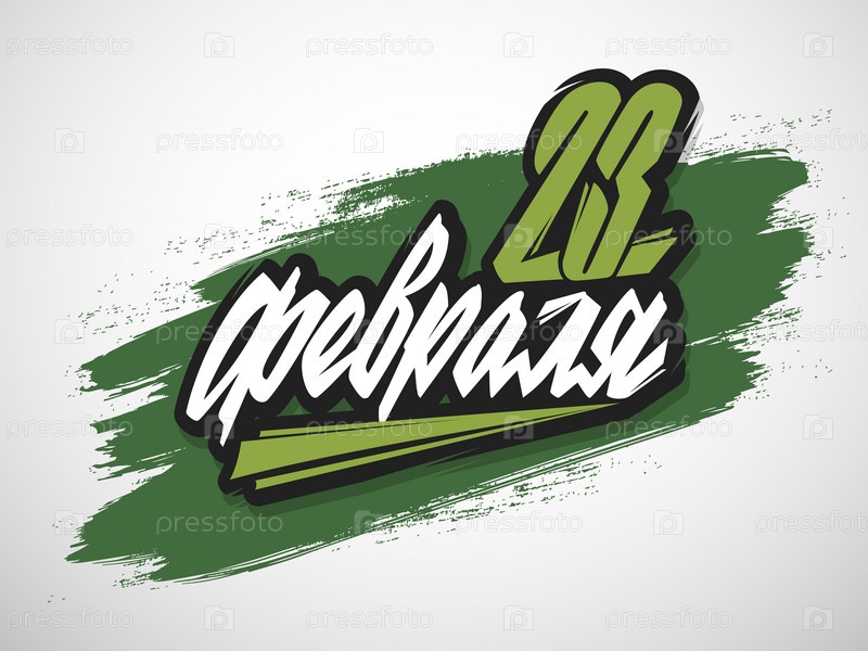 23 февраля-праздник в России. 23 февраля рукописные надписи, типографский векторный дизайн для поздравительных открыток и плакатов. Русский перевод: 23 февраля, с Днем защитника Отечества