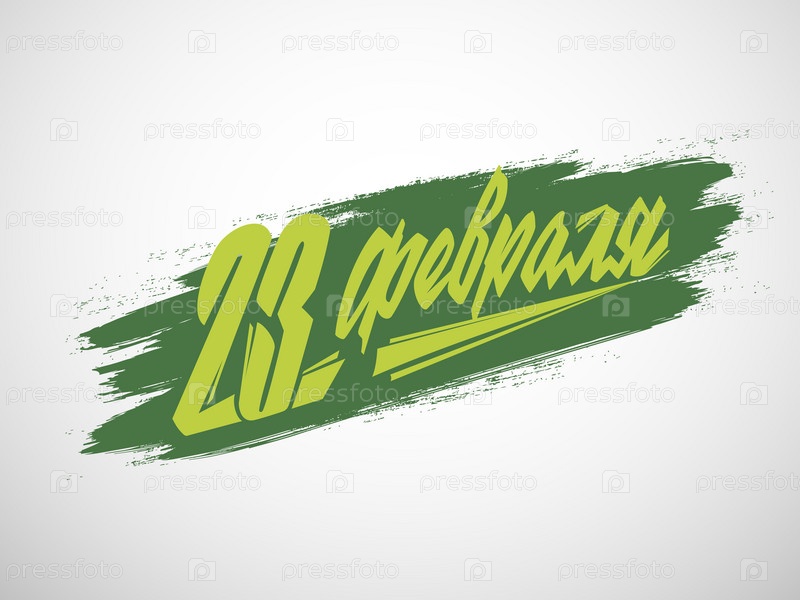 23 февраля-праздник в России. 23 февраля рукописные надписи, типографский векторный дизайн для поздравительных открыток и плакатов. Русский перевод: 23 февраля, с Днем защитника Отечества