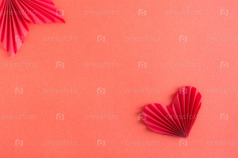 Шаблон с сердцем и листом оригами. Красный монохромный фон. Копировать пространство