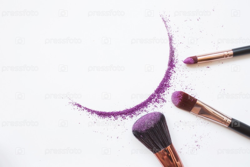 Тени и кисточка для макияжа изолированы на белом