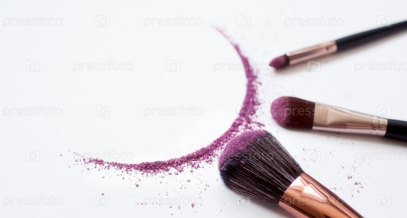 Тени и кисточка для макияжа изолированы на белом