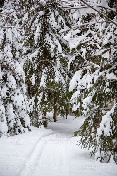 Зимний лес после снежной бури. Естественный фон