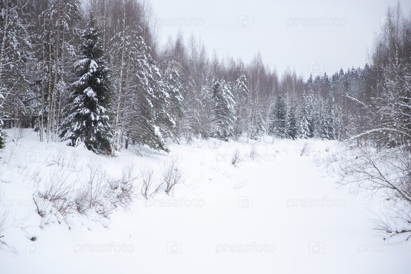 Зимний лес после снежной бури. Естественный фон