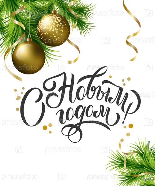 С Новым годом рукописные надписи, типографский векторный дизайн для поздравительных открыток и плакатов. Русский перевод: С Новым годом. Векторная иллюстрация
