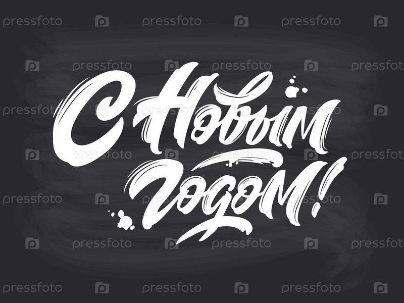С Новым годом рукописные надписи, типографский векторный дизайн для поздравительных открыток и плакатов. Русский перевод: С Новым годом. Векторная иллюстрация