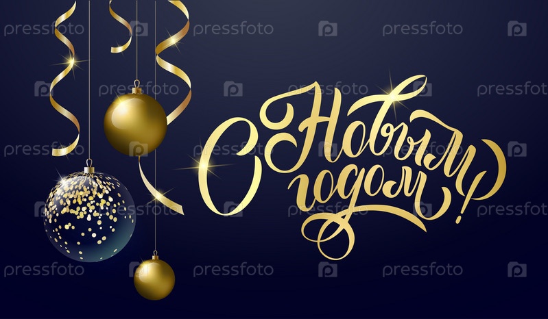 С Новым годом рукописные надписи, типографский векторный дизайн для поздравительных открыток и плакатов. Русский перевод: С Новым годом. Векторная иллюстрация