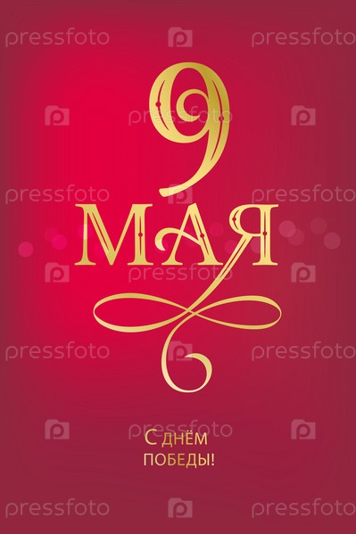 День Победы. 9 мая - Русский праздник. Рукописные надписи ко Дню Победы. Векторный дизайн типографии ко Дню Победы для поздравительных открыток и плакатов. Русский перевод: 9 мая. Векторная иллюстрация