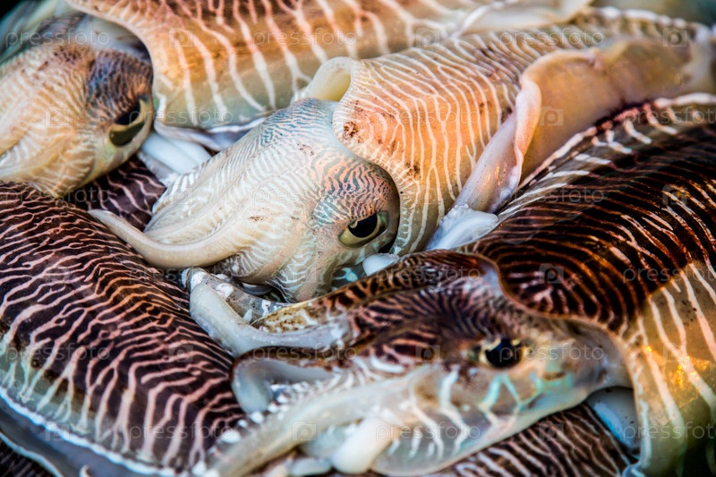 Лоток свежих кальмаров