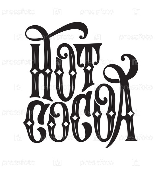 Векторная иллюстрация. Шаблон векторного текста горячего какао с каллиграфическими надписями. Каллиграфические надписи ручной работы
