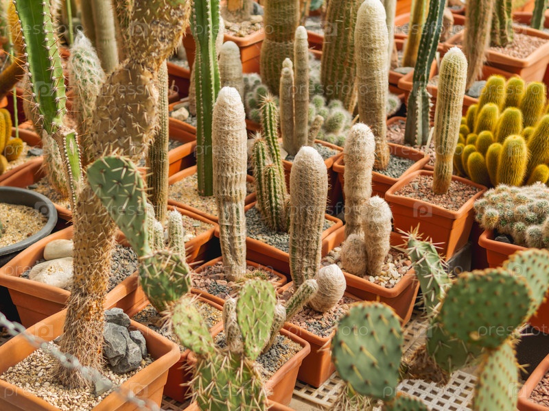 Коллекция различных кактусов. Кактус, колючее растение. Ботаническое хобби или выращивание для гибридизации