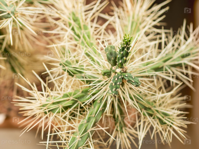 Колючий кактюс Cylindropuntia tunicata, широко известный как колла в ножниках. Кактус с длинными шипами