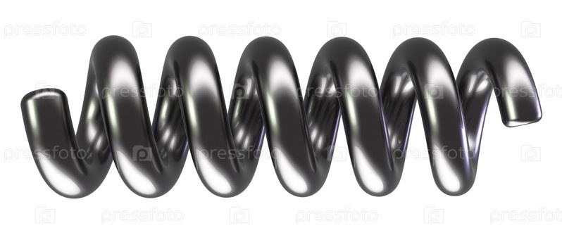 Металлическая пружина на белом фоне. Элемент дизайна
