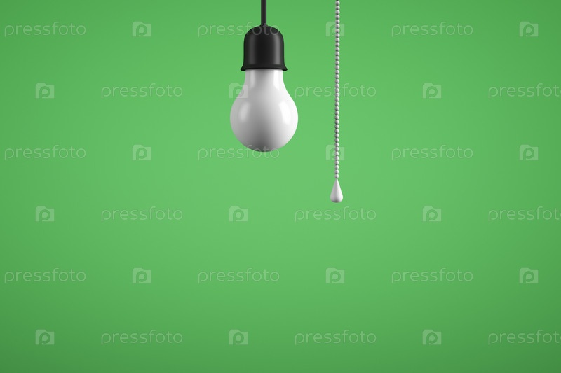 Тема зеленой энергии. Выключенная лампочка на зеленом фоне