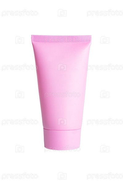 Розовый пластиковый крем или маска или тюбик шампуня изолированы на белом фоне путем обтравочного контура. Макет медицины и косметологии по уходу за кожей