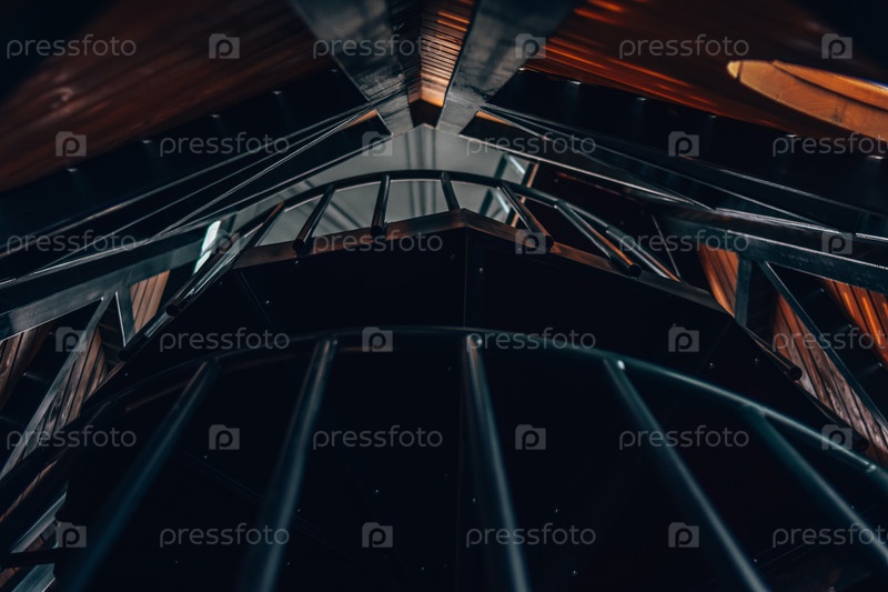 Винтовая лестница на маяке, металлическая и деревянная конструкция